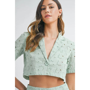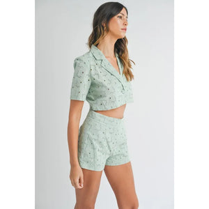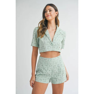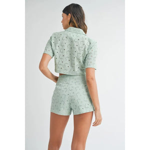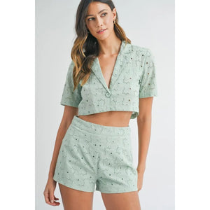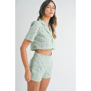 MABLE Eyelet Short Sleeve Crop Top and Shorts Set