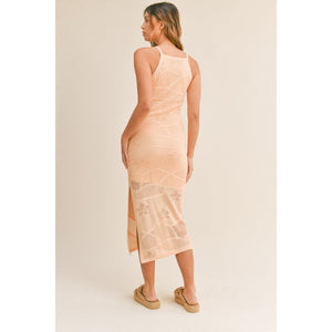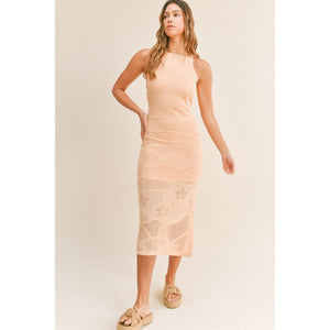 MABLE Floral Design Knit Slit Midi Dress