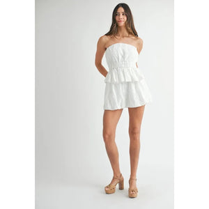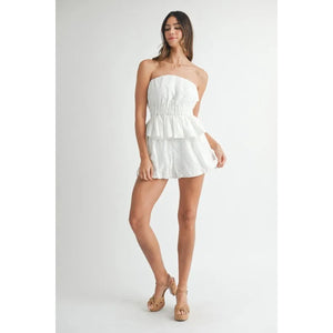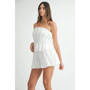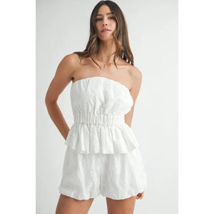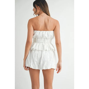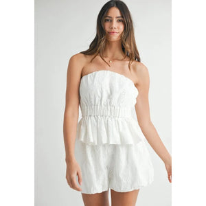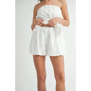 MABLE Floral Eyelet Lace Tube Top and Short Set