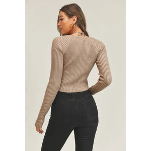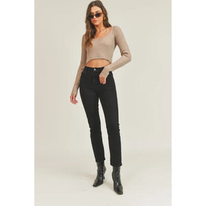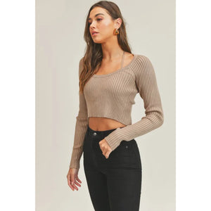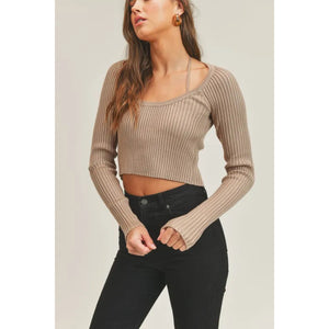 MABLE Long Sleeve Crop Sweater Top and Inner Bra Set