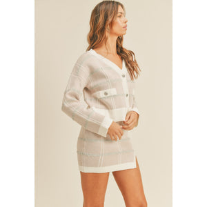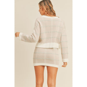 MABLE Plaid Button Down Sweater Cardigan and Mini Skirt Set