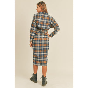 Mable Plaid Flannel Front Tie Button Down Shirt Dress