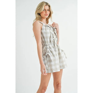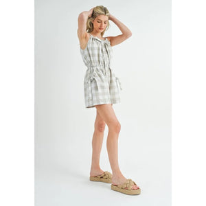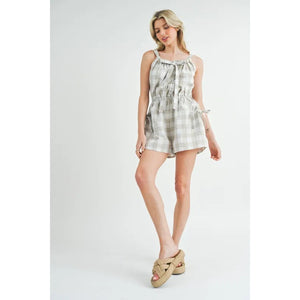 The plaid sleeveless button down romper is a stylish and versatile piece that combines classic plaid with a modern romper silhouette. This romper features a sleeveless design and a button-down front for a trendy and effortless look. Perfect for casual outings or picnics, the plaid pattern adds a touch of preppy charm to the outfit. The romper style makes it easy to wear and style, offering comfort and ease of movement. With its combination of plaid print and romper design, this piece is both fashionable and comfortable for everyday wear. Effortlessly chic and versatile, the plaid sleeveless button down romper is a must-have addition to your casual wardrobe.