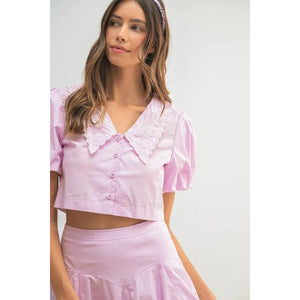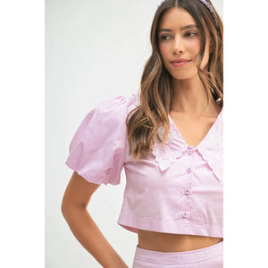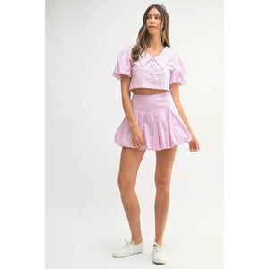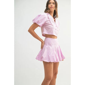 MABLE Puff Sleeve Button Down Top and Bubble Skirt Set