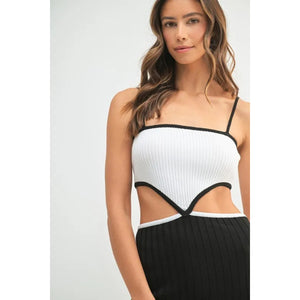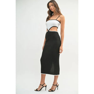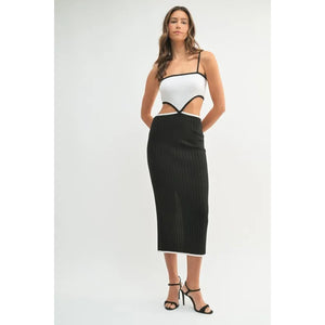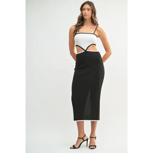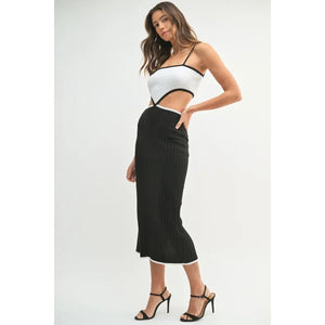 MABLE Ribbed Knit Color Block Cutout Midi Dress