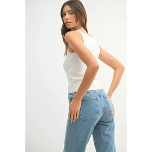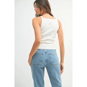 The ribbed knit tank is a versatile and essential piece for any wardrobe. The ribbed texture adds a subtle detail to the tank, while the knit fabric provides a comfortable and stretchy fit. Perfect for layering or wearing on its own, this tank top exudes a classic and effortless vibe that can be dressed up or down for various occasions. Pair it with your favorite jeans or a skirt for a timeless and stylish look that will never go out of style.