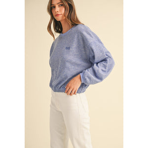 Mable Round Neck Letter Embroidery Crop Sweatshirt