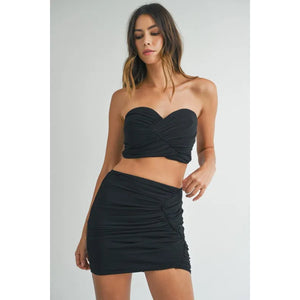 MABLE Ruched Tube Crop Top and Skirt Set