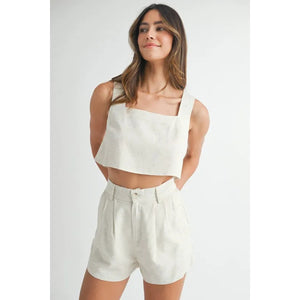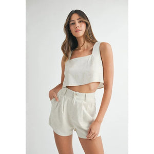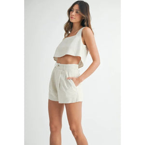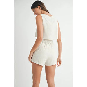 This sleeveless crop top and shorts set is perfect for staying cool and stylish during warm weather. The simple yet trendy design makes it easy to mix and match with other pieces in your wardrobe. Stay comfortable and chic all day long in this versatile ensemble.