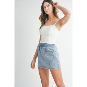 A strappy back cropped cami is a trendy and versatile top that features a stylish and eye-catching design at the back, perfect for adding a touch of flair to your outfit. The cropped length of this cami makes it ideal for pairing with high-waisted bottoms for a trendy and flattering look. The strappy back detail adds a playful and sexy element to the overall style, making it a perfect choice for a night out or a casual day out. This type of cami is great for showing off your back and shoulders while keeping you cool and comfortable in warmer weather. With its chic and contemporary design, the strappy back cropped cami is a must-have addition to your wardrobe, offering a fresh and fashionable twist to your outfit choices.