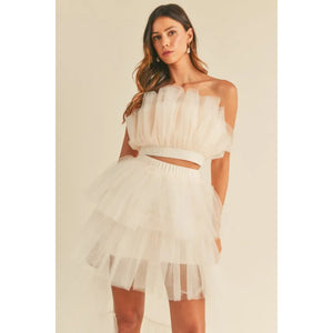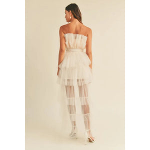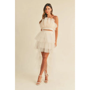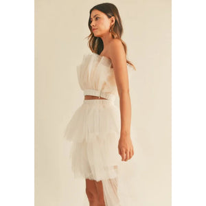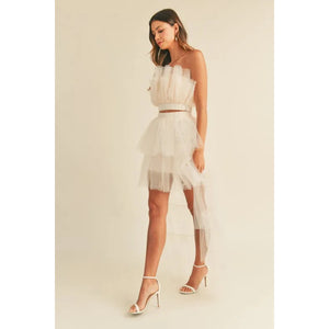 MABLE Tulle Tube Ruffle Crop Top and High Low Maxi Skirt Set