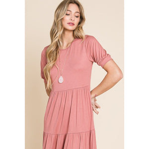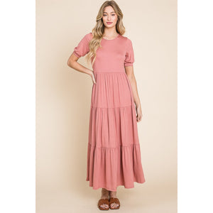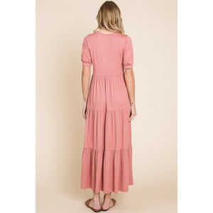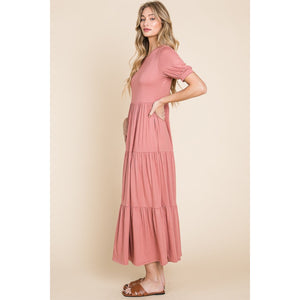BOMBOM Short Sleeve Tiered Maxi Dress