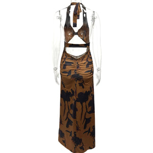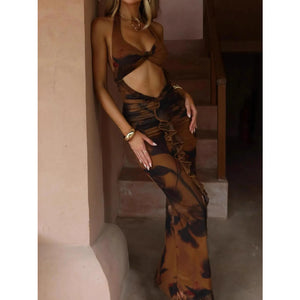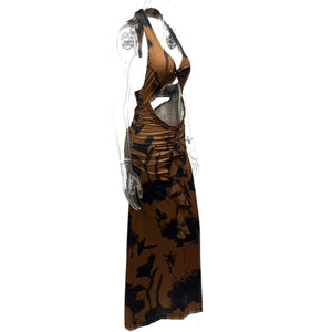 Cutout Printed Halter Neck Maxi Dress