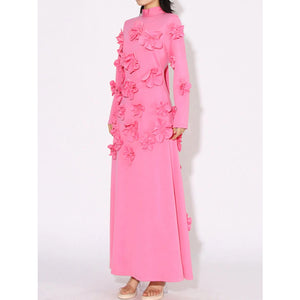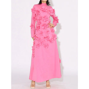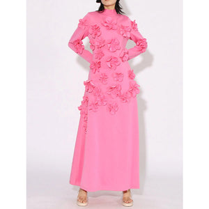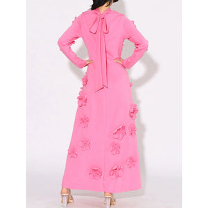 Floral Applique Long Sleeve Maxi Dress
