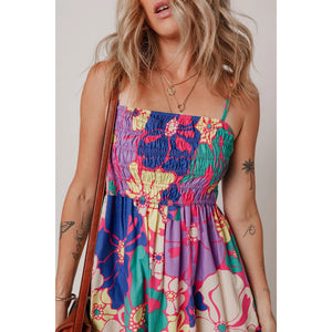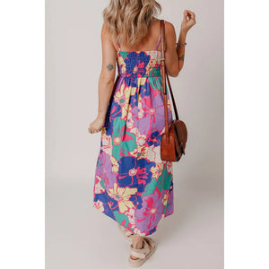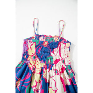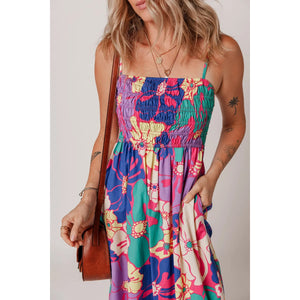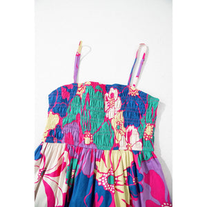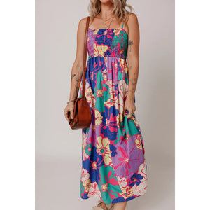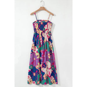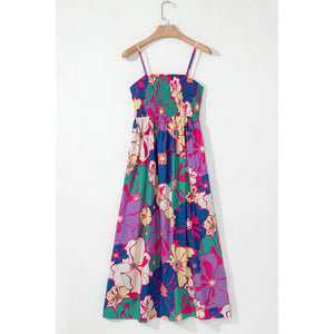 Floral Print Shirred Spaghetti Strap Loose Maxi Dress