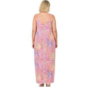 French Terry Rainbow Leopard V-Neck Cami Maxi Dress with Pockets - Bright Rainbow