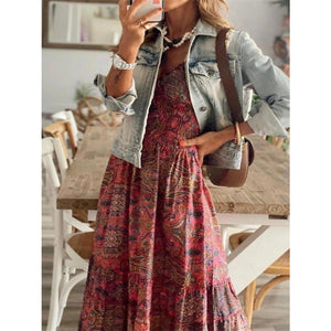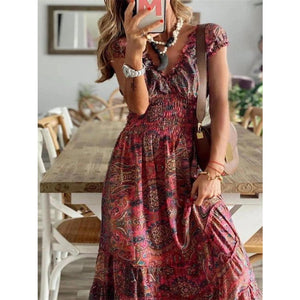 Full Size Paisley Print Cap Sleeve Maxi Dress Plus Size