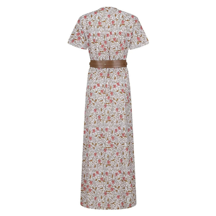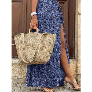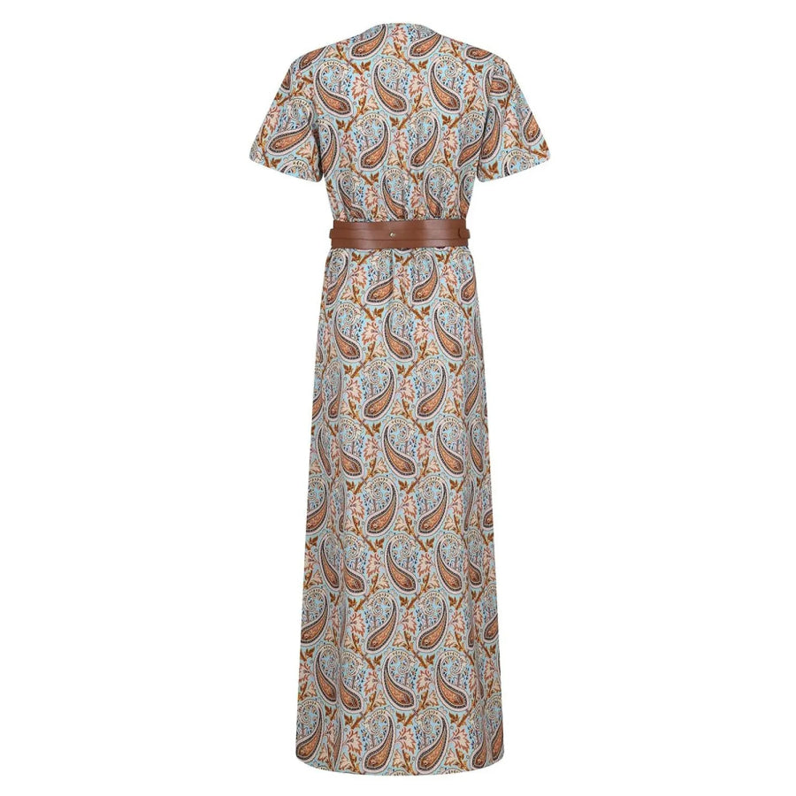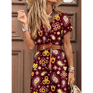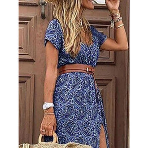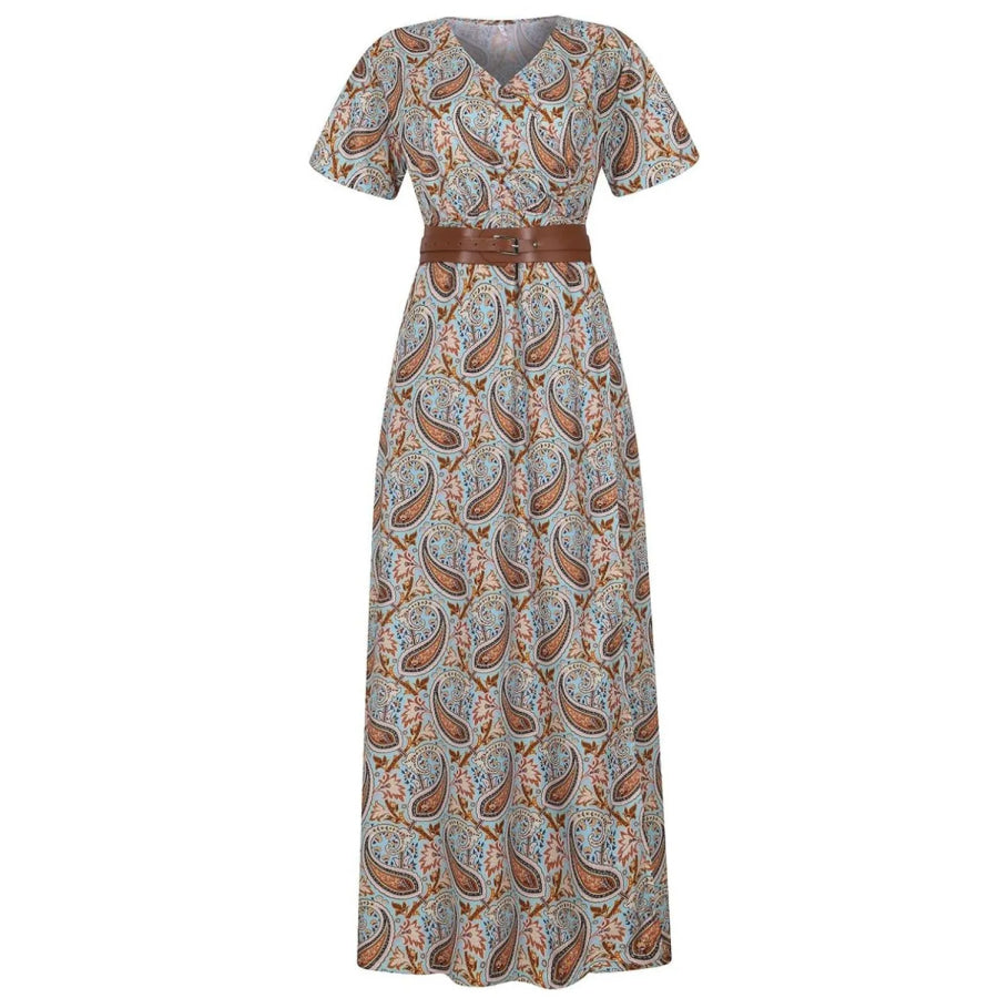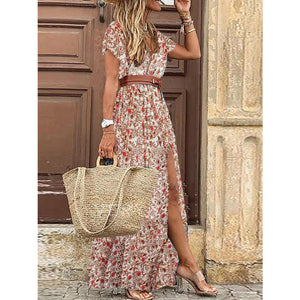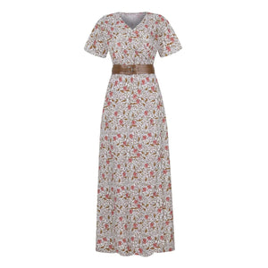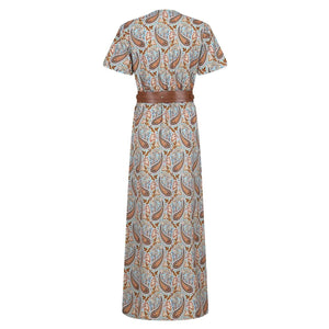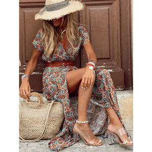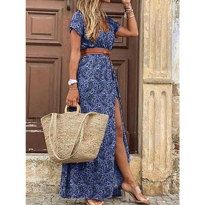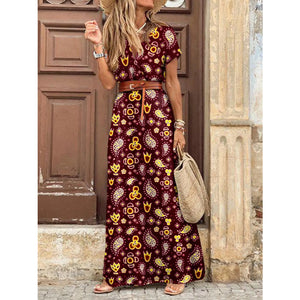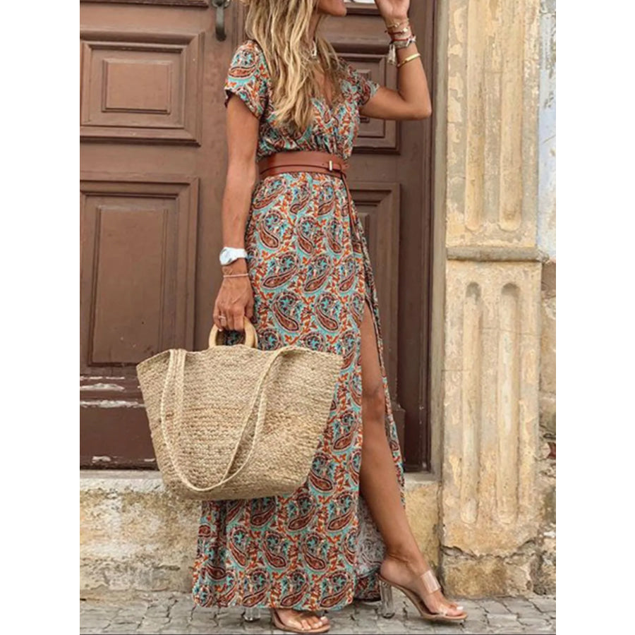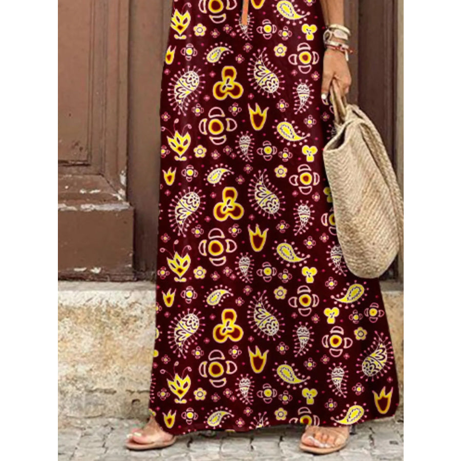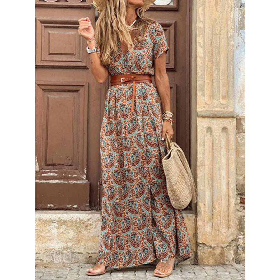 Full Size Printed V-Neck Short Sleeve Maxi Dress Plus Size