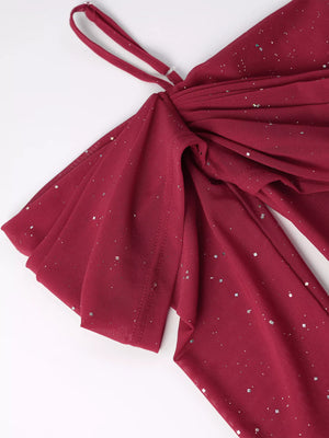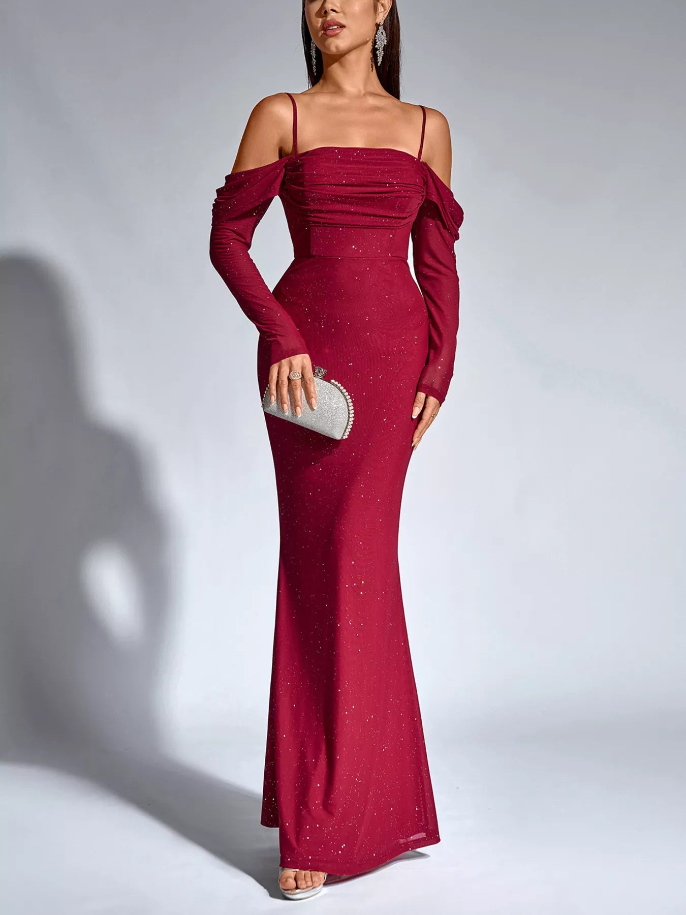 Glitter Ruched Long Sleeve Mermaid Maxi Dress