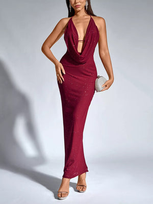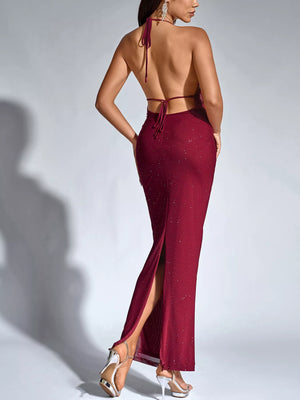 Halter Neck Glitter Bodycon Maxi Dress