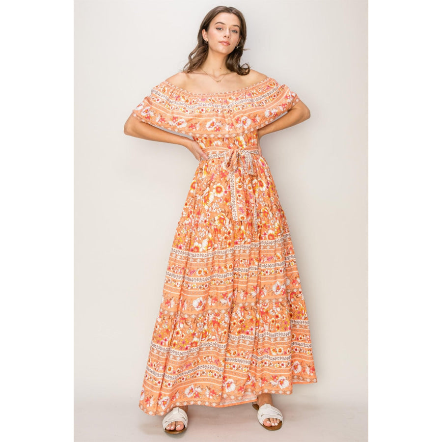 HYFVE Floral Off-Shoulder Tie Front Maxi Dress