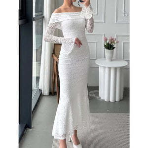 Off-Shoulder Lace Bodycon Maxi Dress