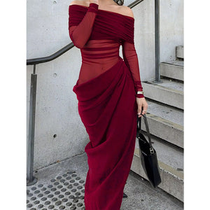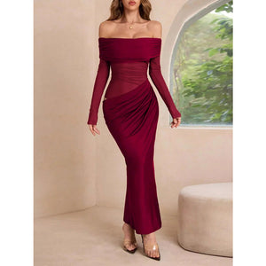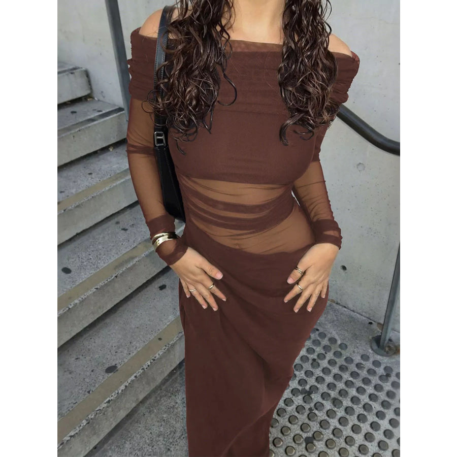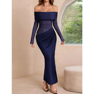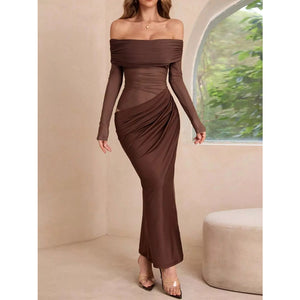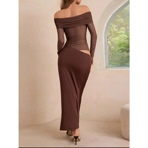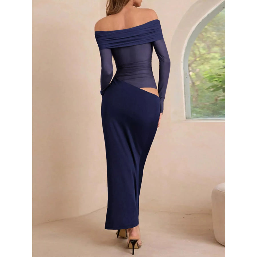 Off-Shoulder Long Sleeve Ruched Bodycon Maxi Dress