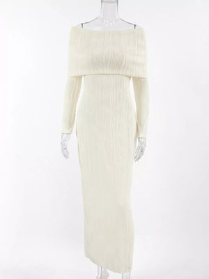 Off-Shoulder Textured Knit Maxi Dress