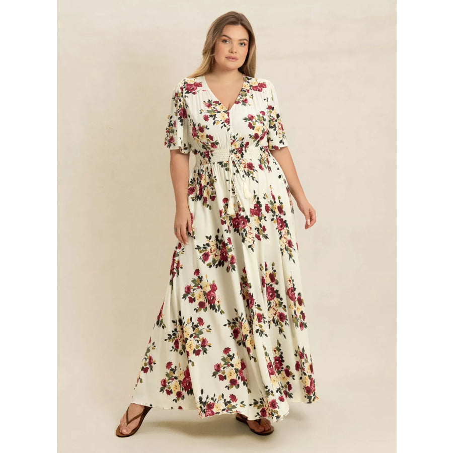 Plus Size Floral Flutter Sleeve Maxi Dress with Button Front