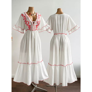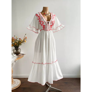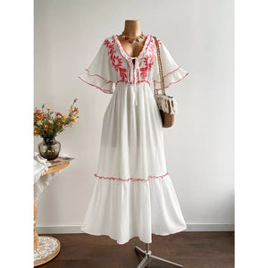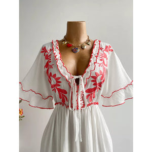 Plus Size Front Tie Maxi Dress with Floral Embroidered