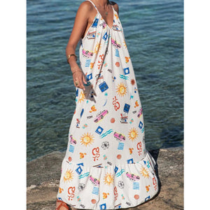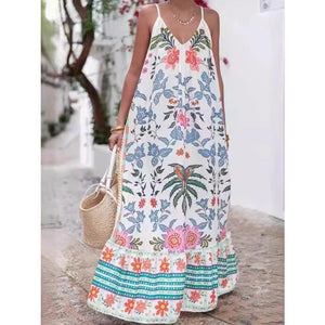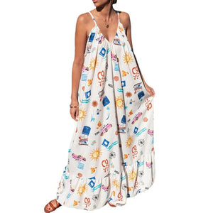 Printed V-neck Summer Maxi Dress