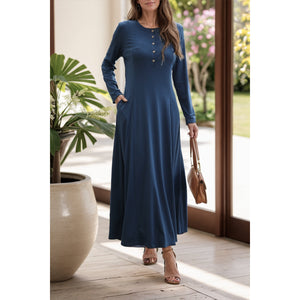 Round Neck Long Sleeve Maxi Dress with Pockets