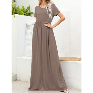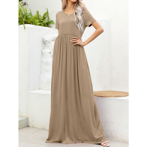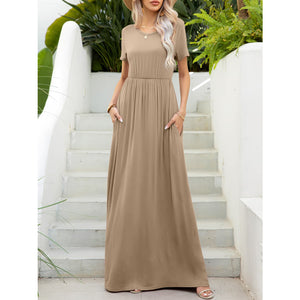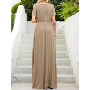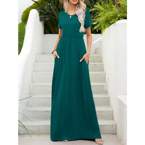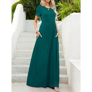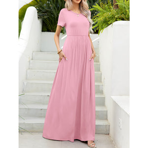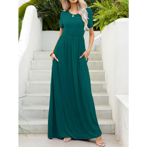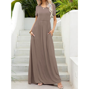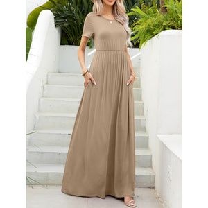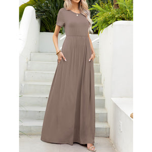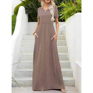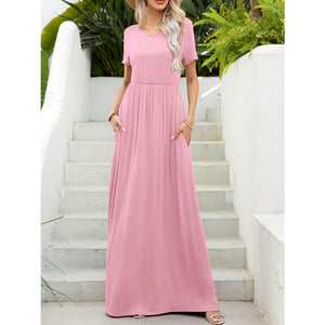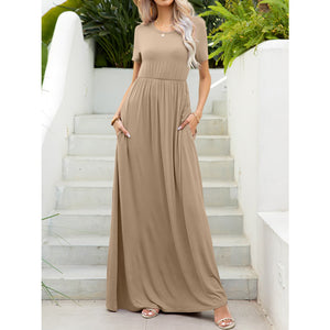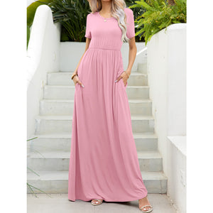 Round Neck Short Sleeve Maxi Dress with Pockets
