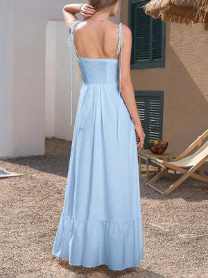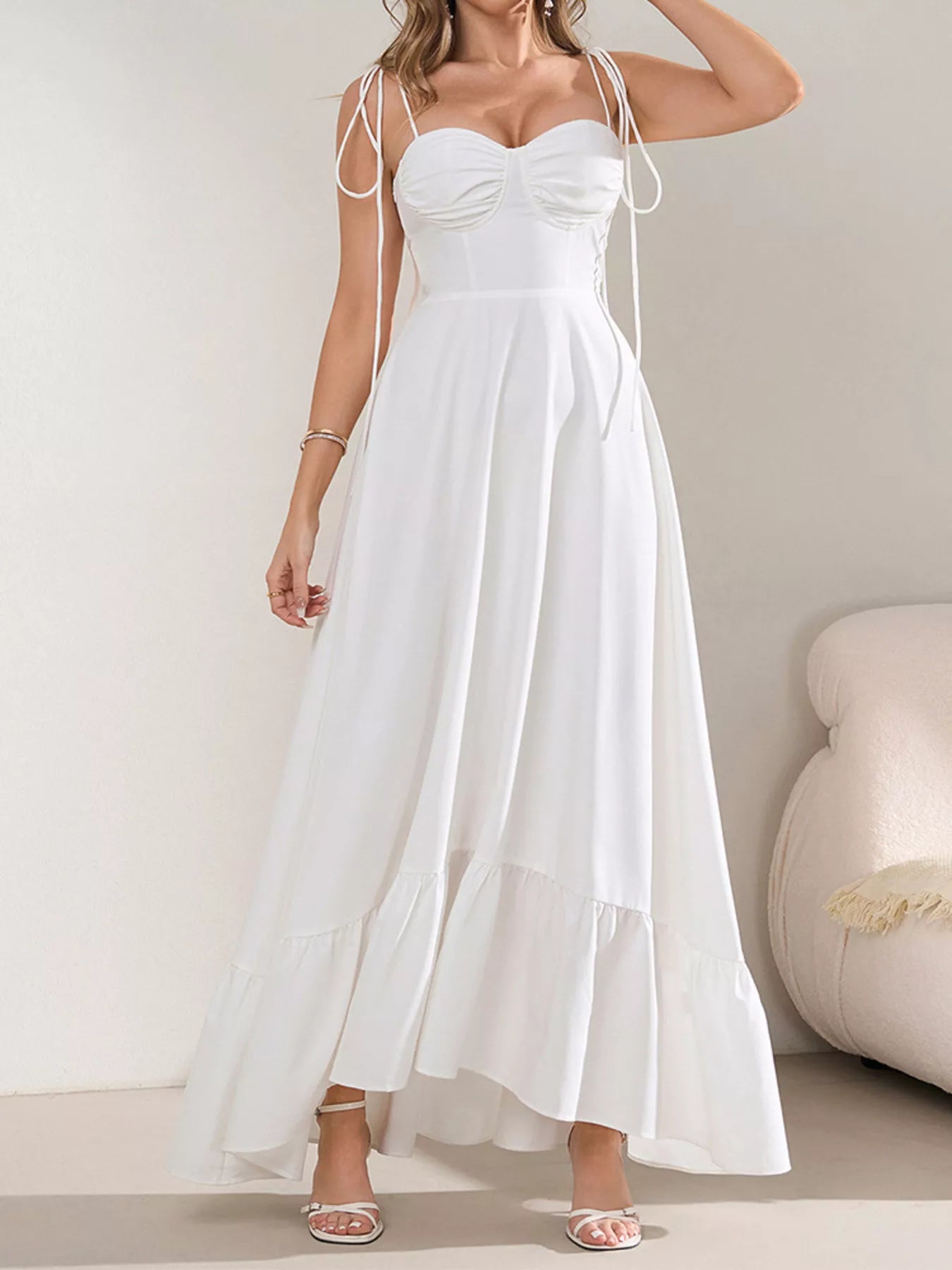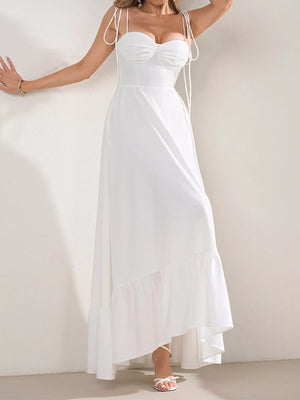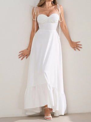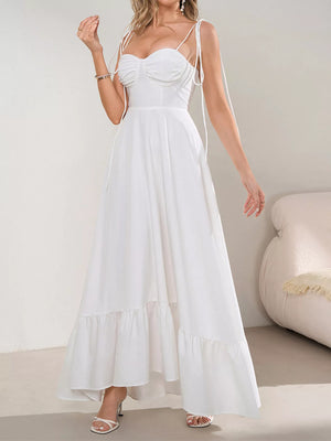 Sweetheart Neck Tie-Strap Ruffle Hem Maxi Dress