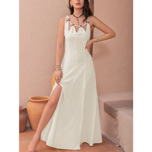 Swiss Dot Cutout Sleeveless Maxi Dress