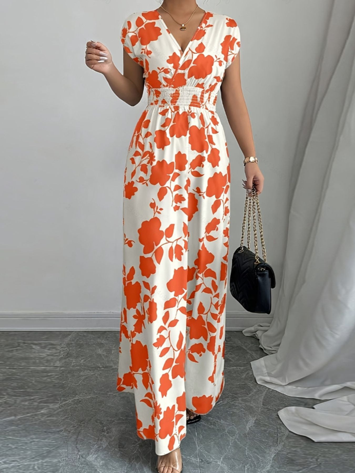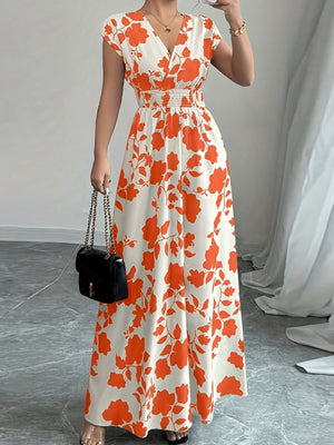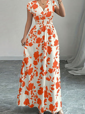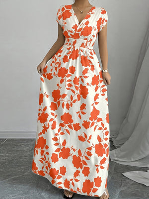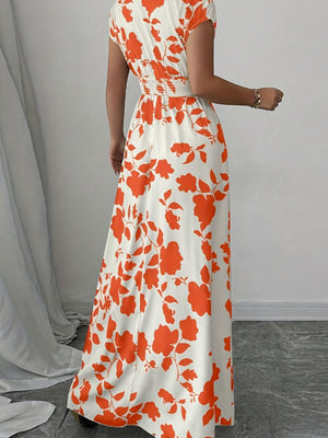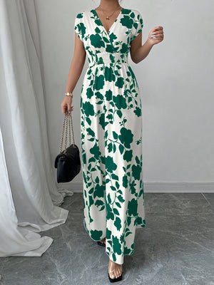 Printed Surplice Cap Sleeve Maxi Dress