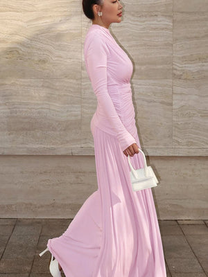 Ruched Long Sleeve Mermaid Maxi Dress