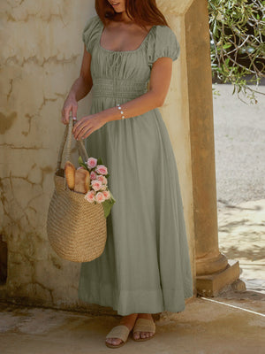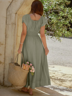 Smocked Waist Puff Sleeve Maxi Dress
