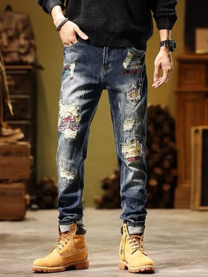 Men's Full Size Distressed Wash Slim Fit Jeans Plus Size
