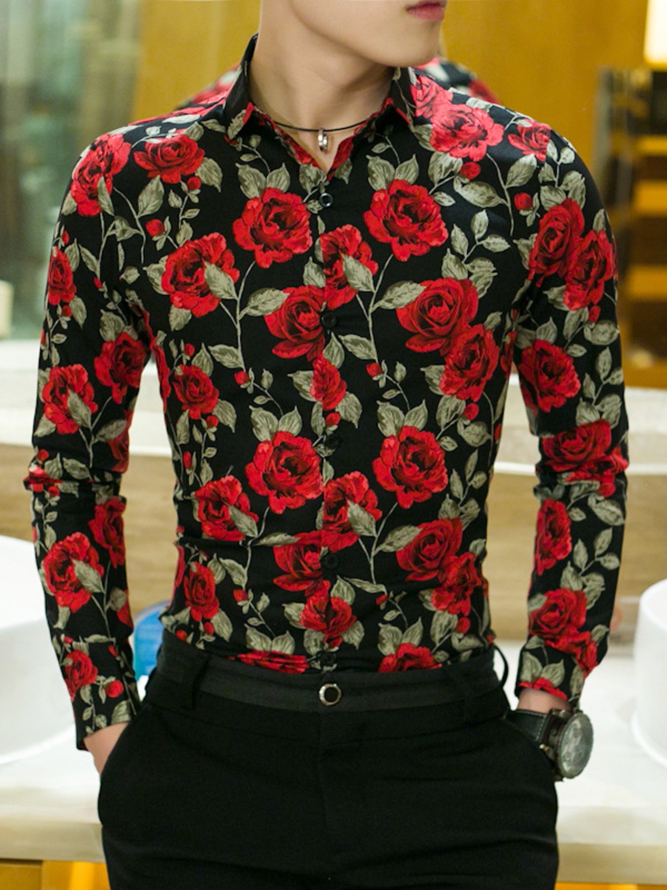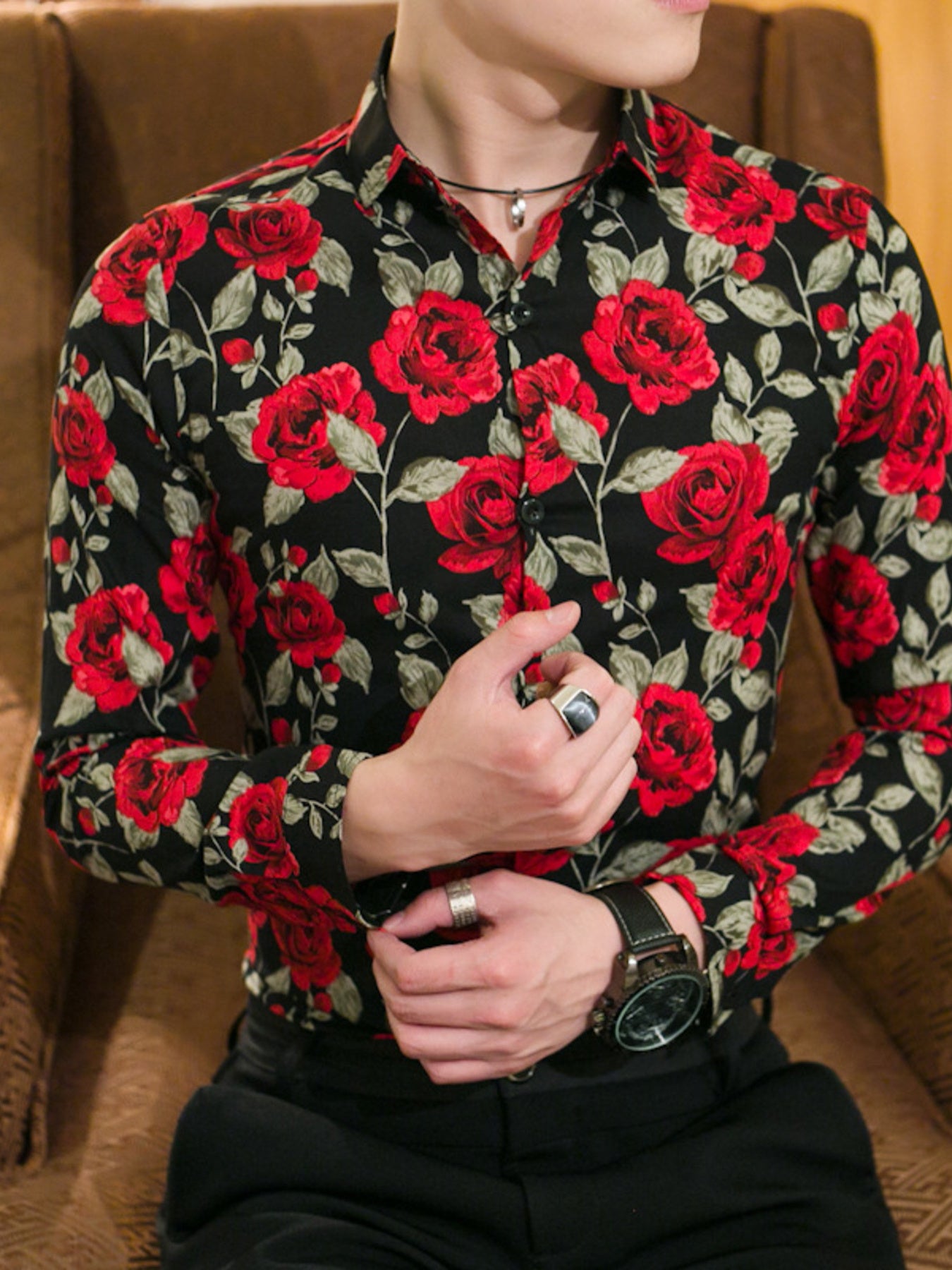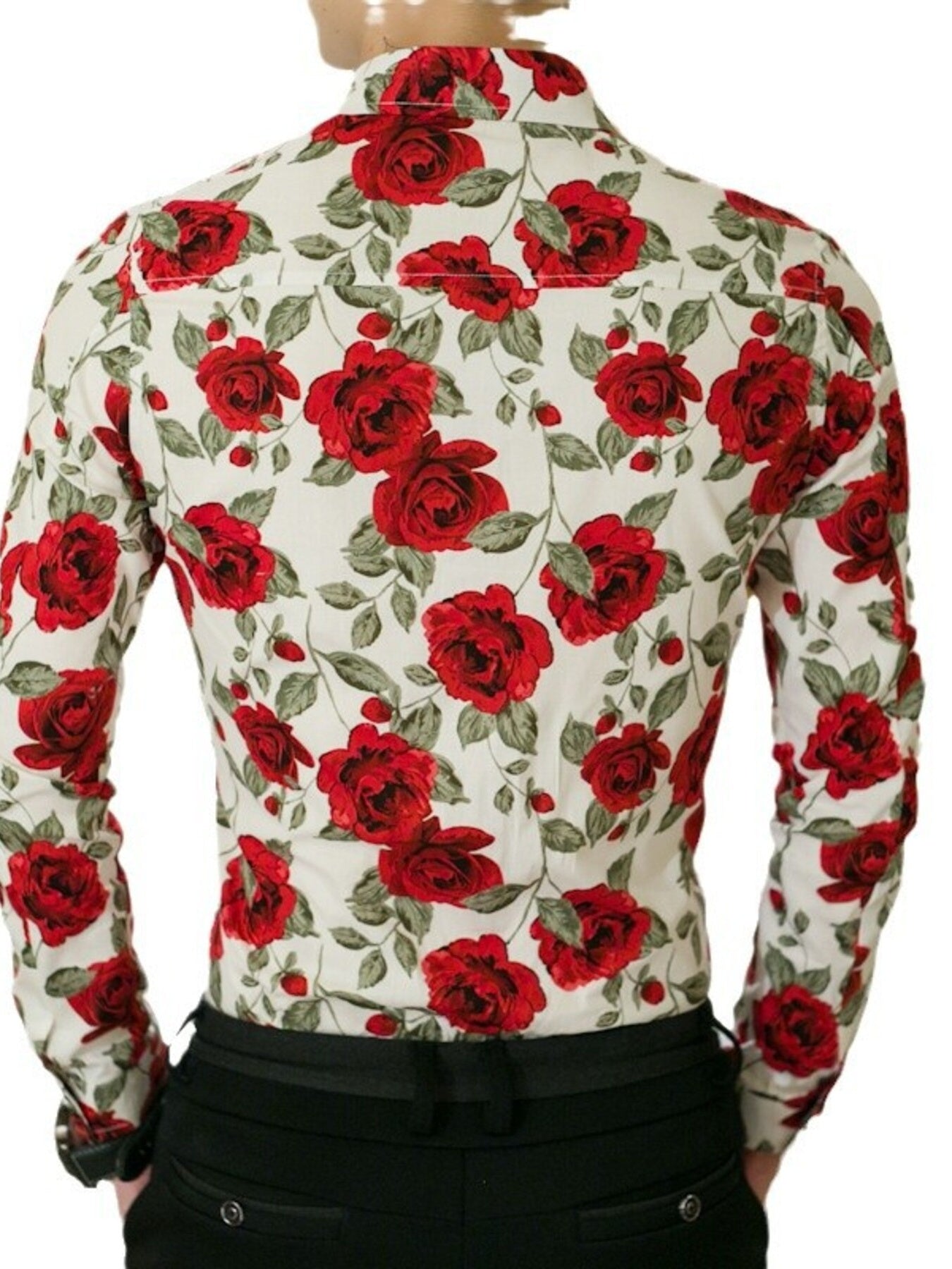 Men's Plus Size Floral Print Slim Fit Long Sleeve Shirt