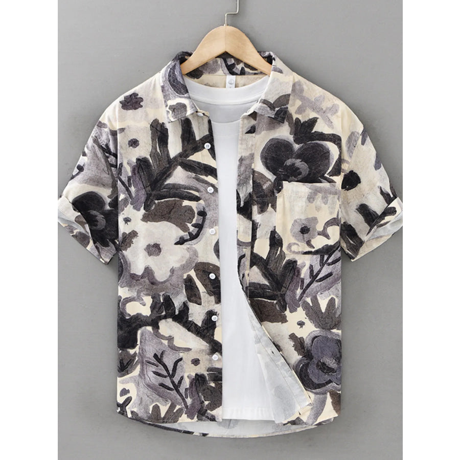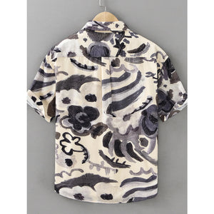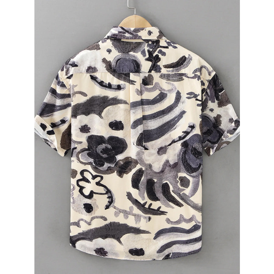 Men's Plus Size Printed Button Up Short Sleeve Shirt
