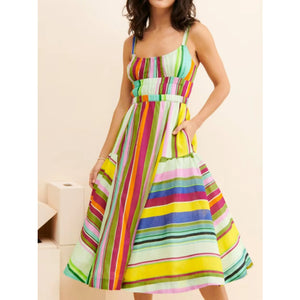 Colorful Striped Spaghetti Strap Midi Dress