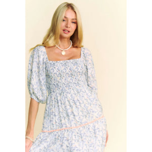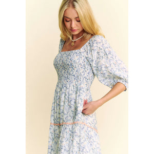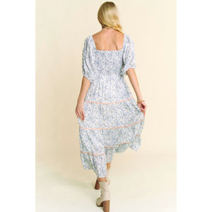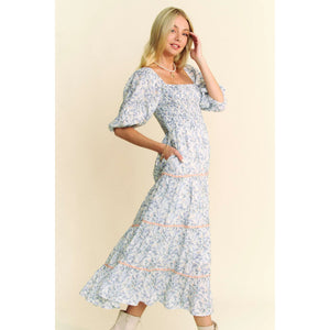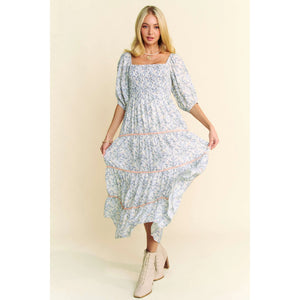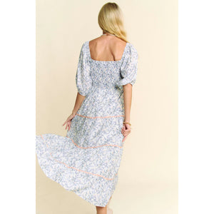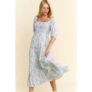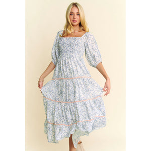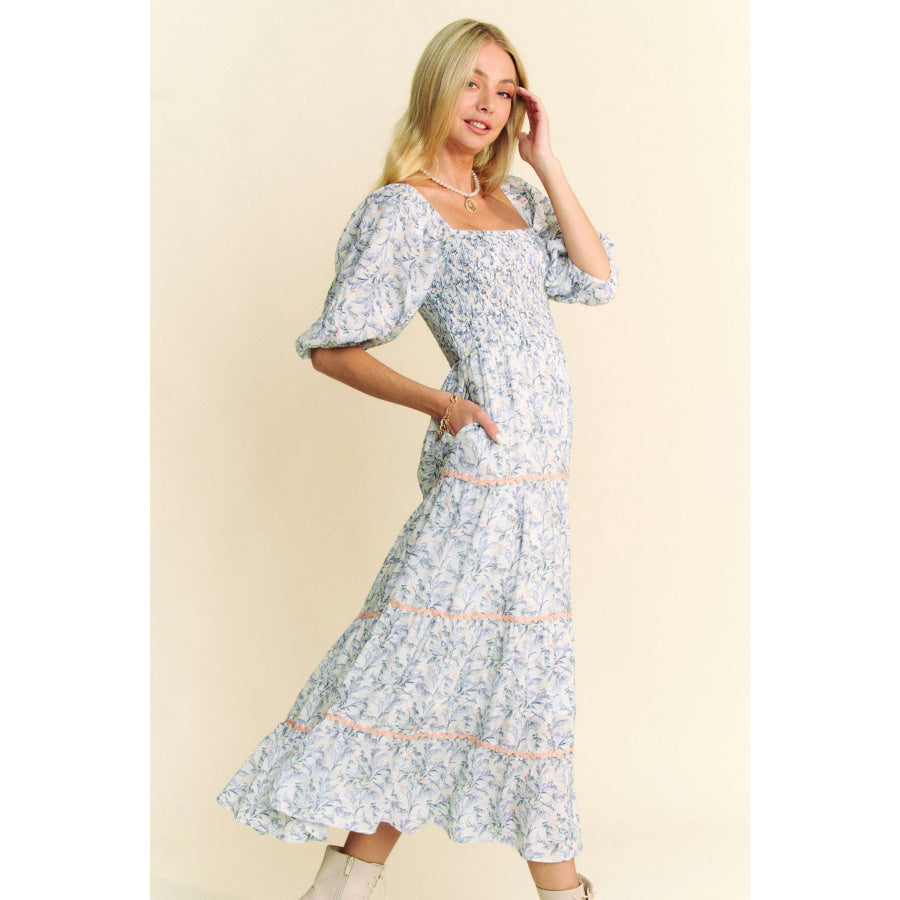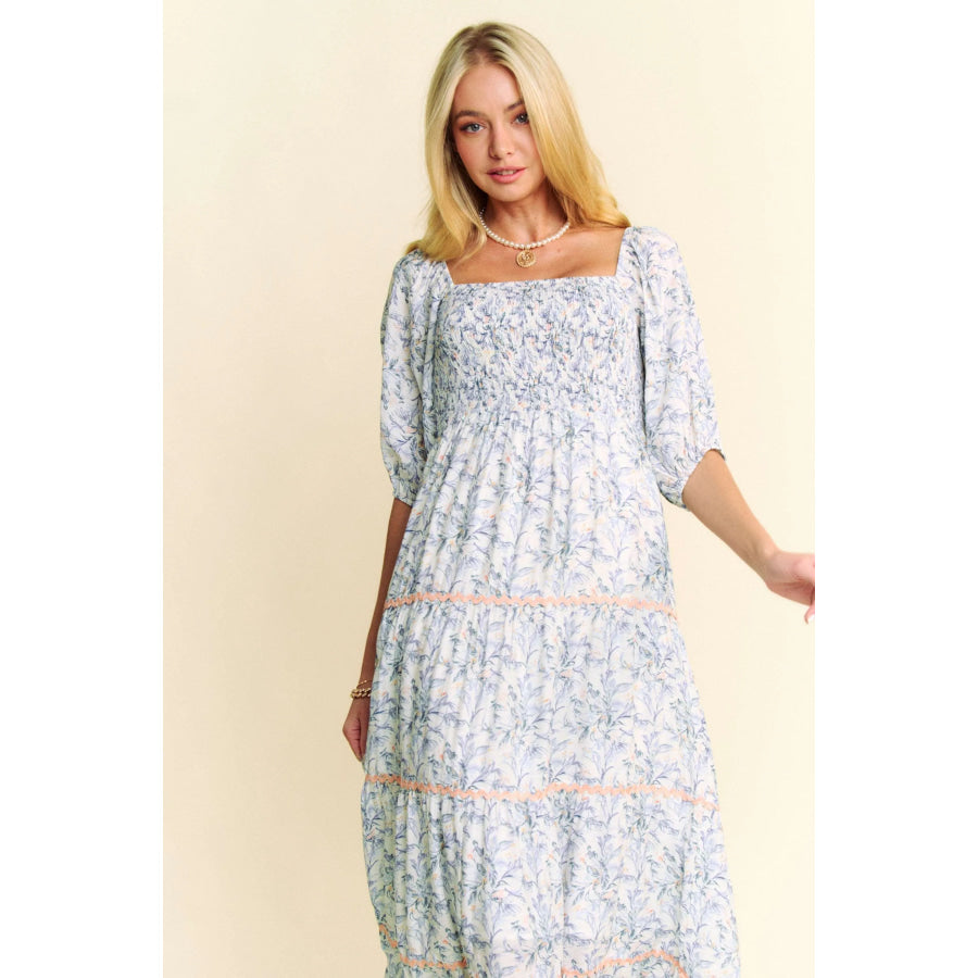 Davi & Dani Contrast Ric Smocking Bodice Tiered Midi Dress