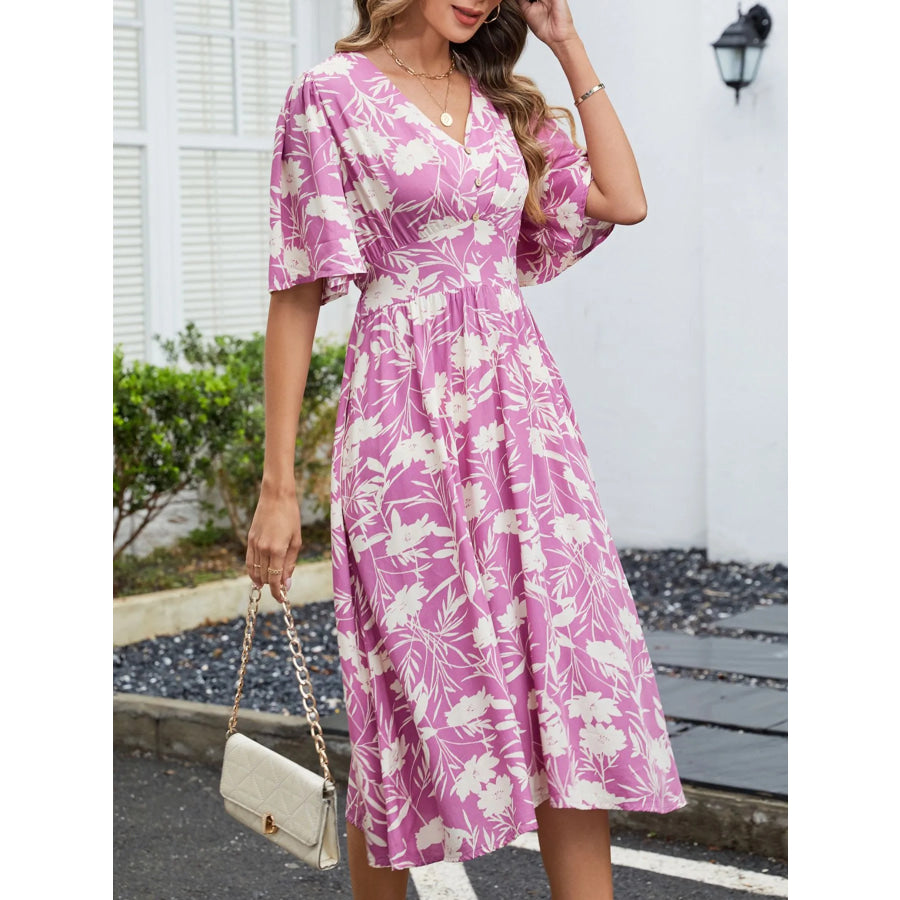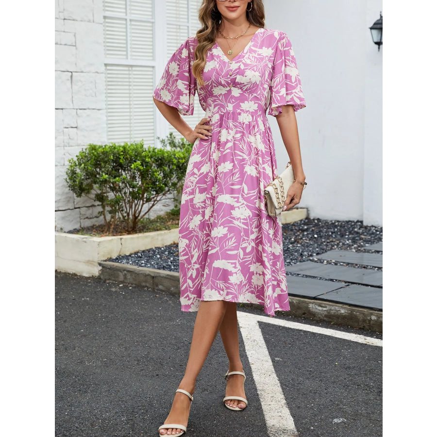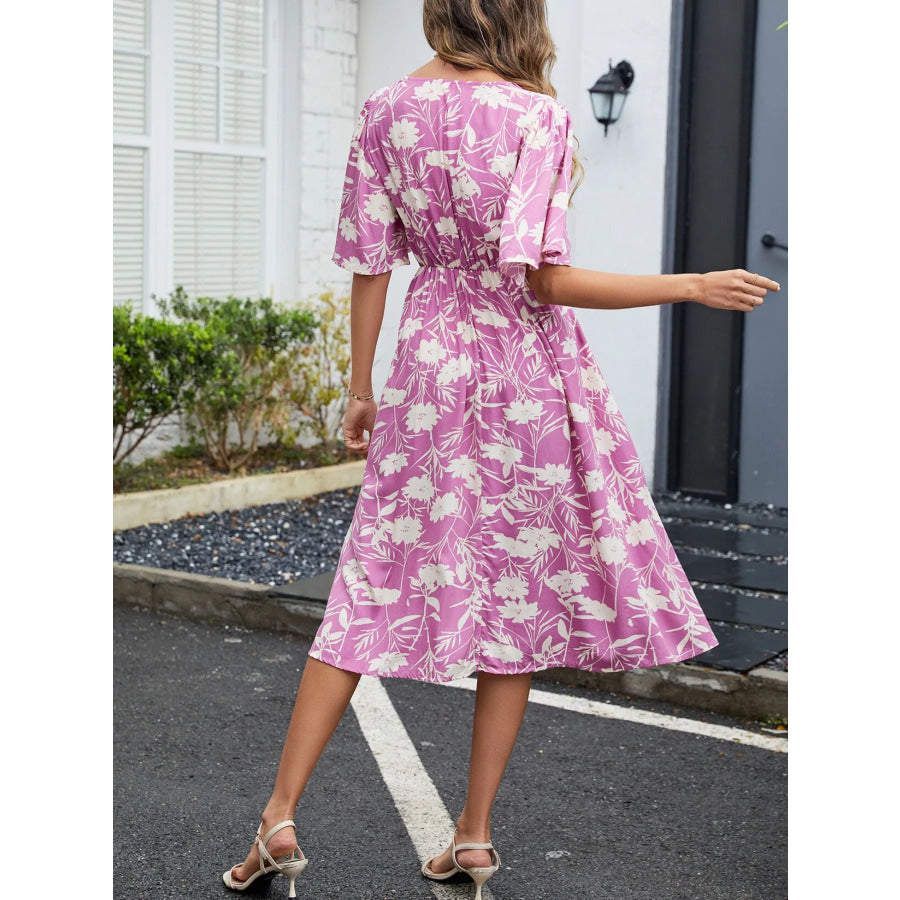 Floral Flutter Sleeve V-Neck Summer Midi Dress