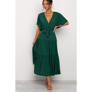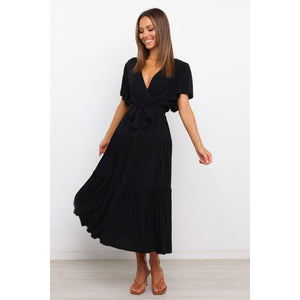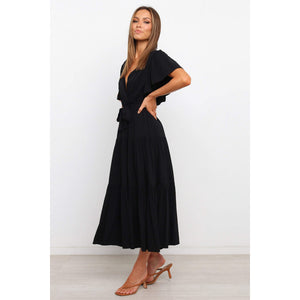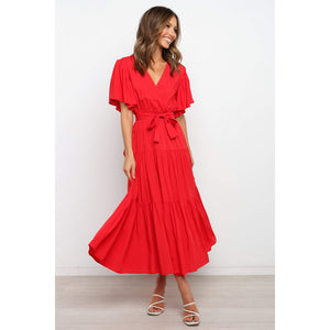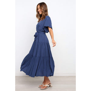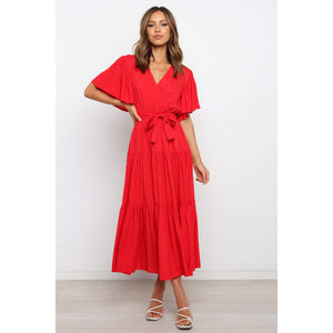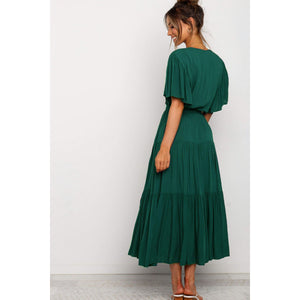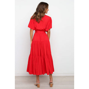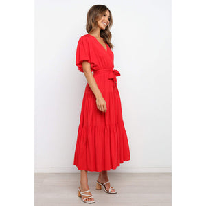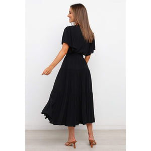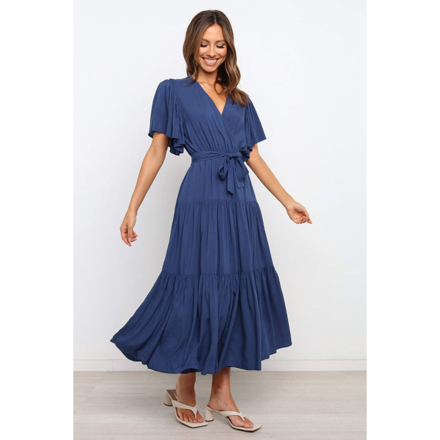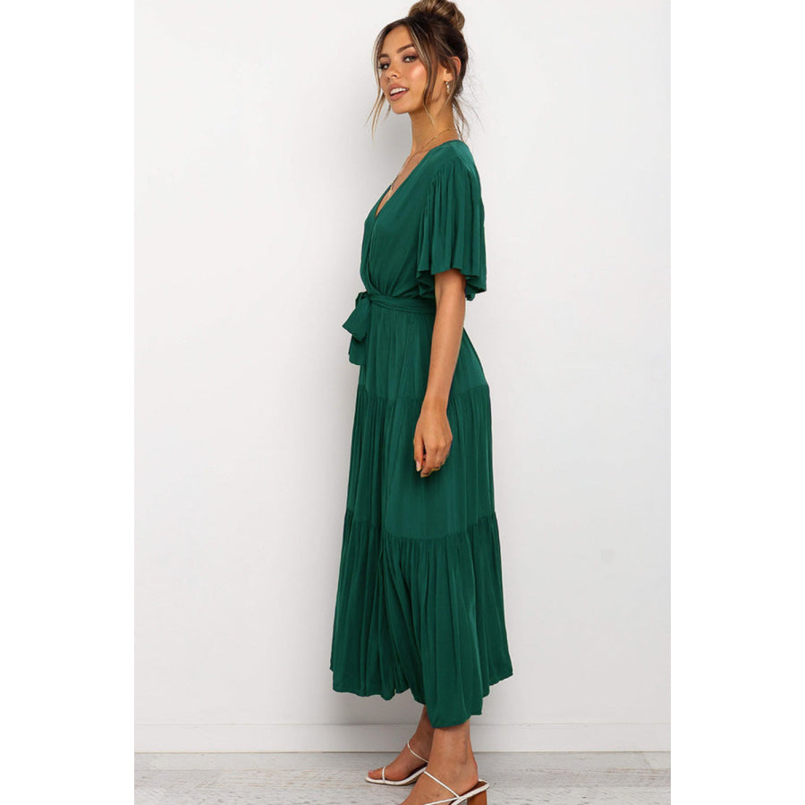 Front Tie Short Sleeve Tiered Midi Dress