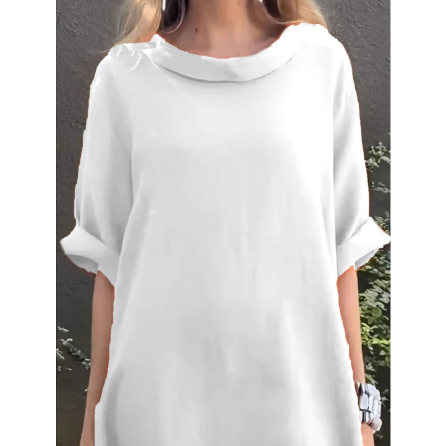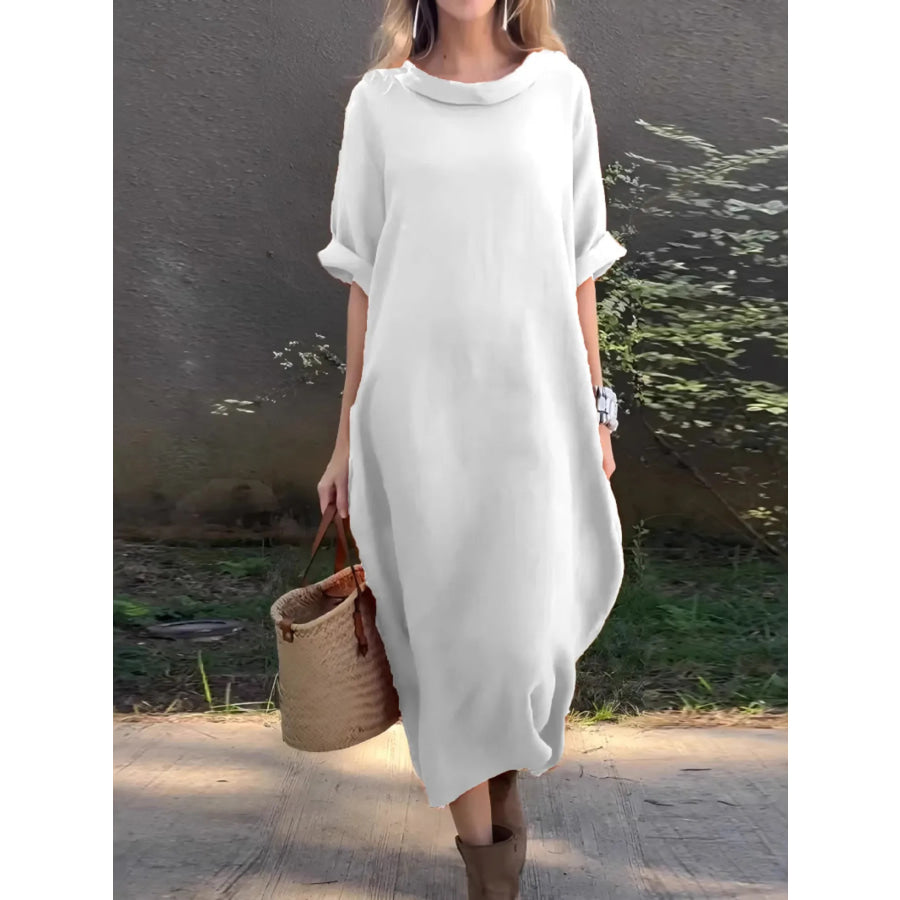 Full Size Casual Loose Fit Round Neck Midi Dress Plus Size