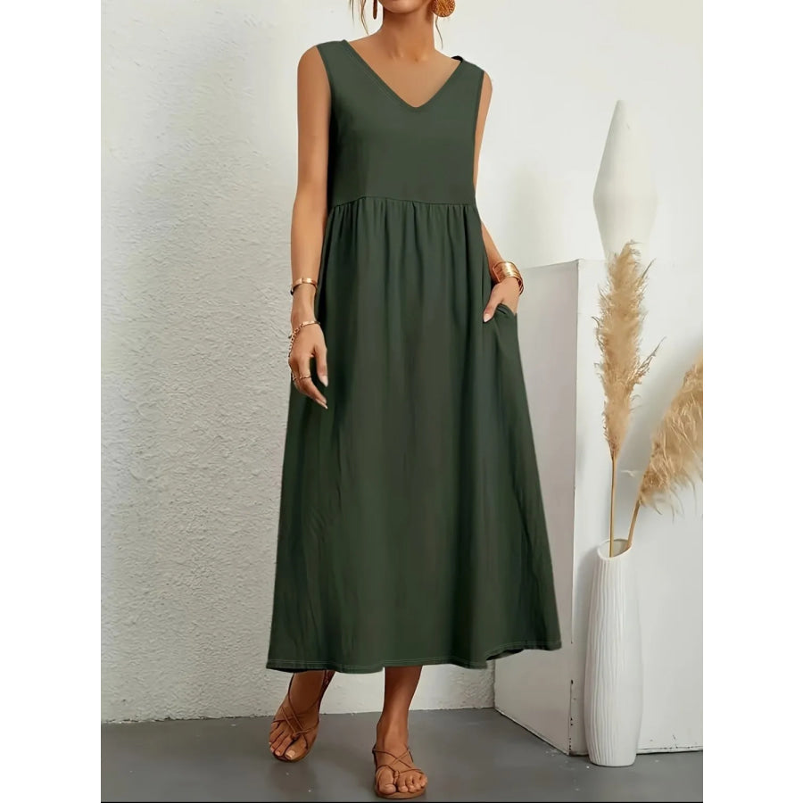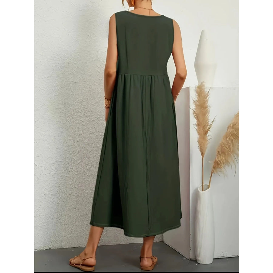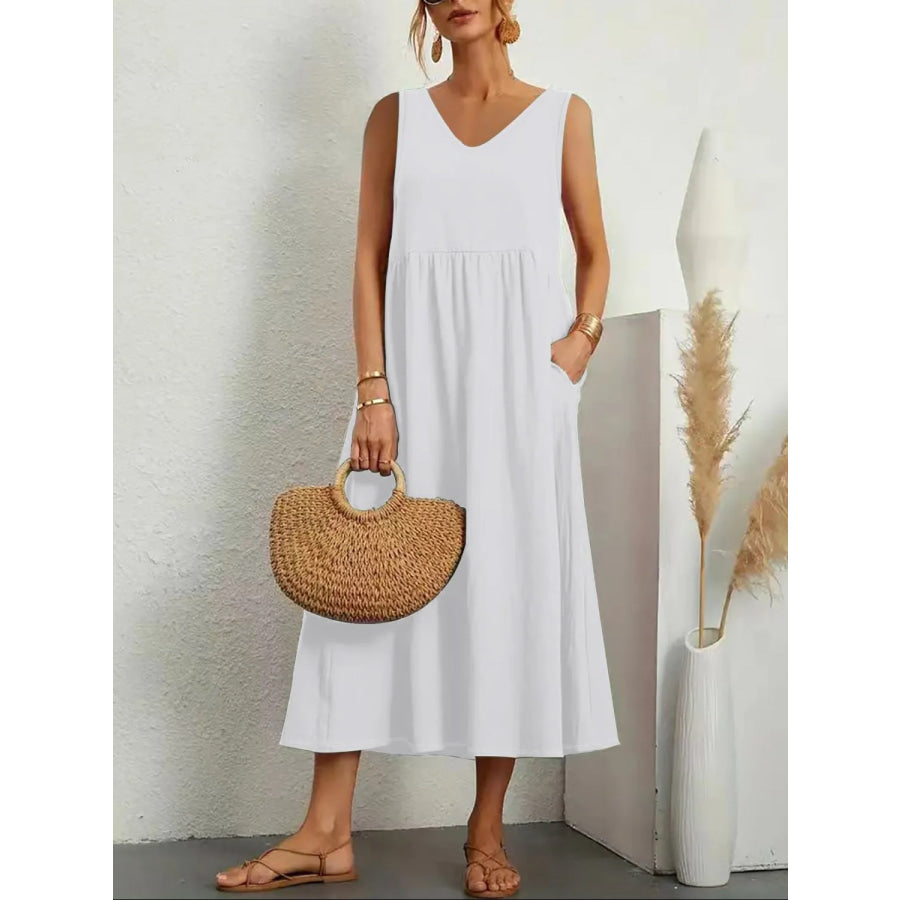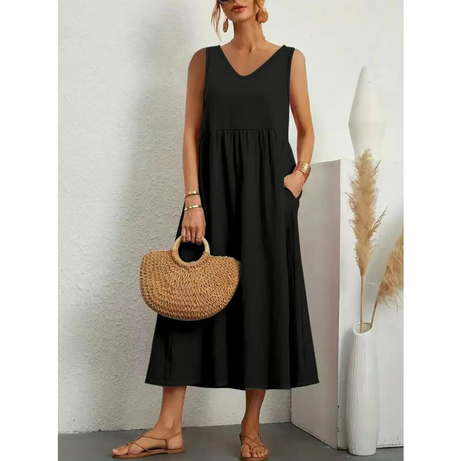 Full Size Pocketed V-Neck Sleeveless Midi Dress Plus Size