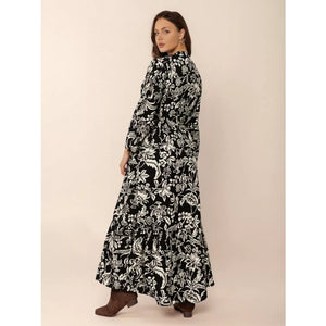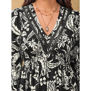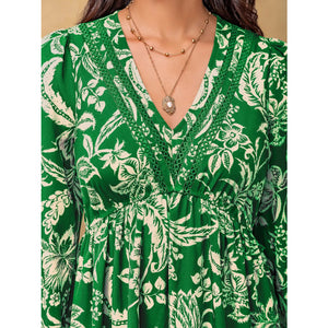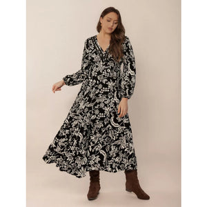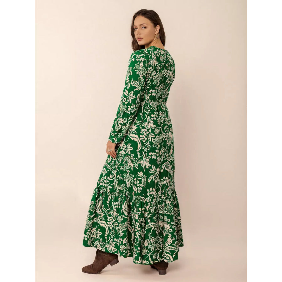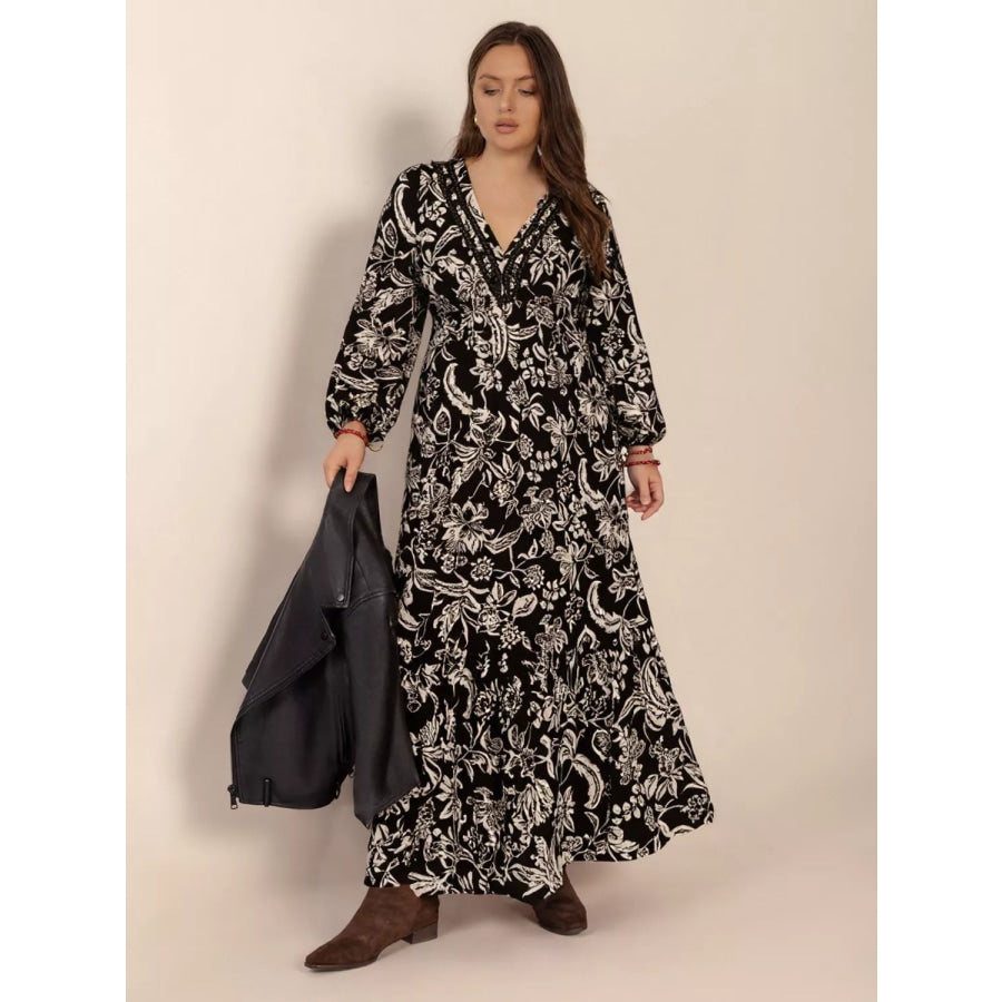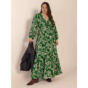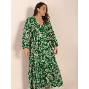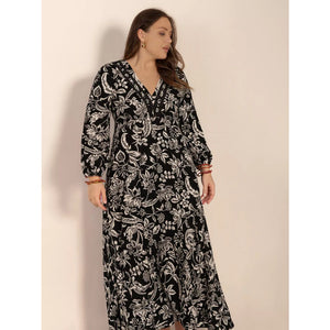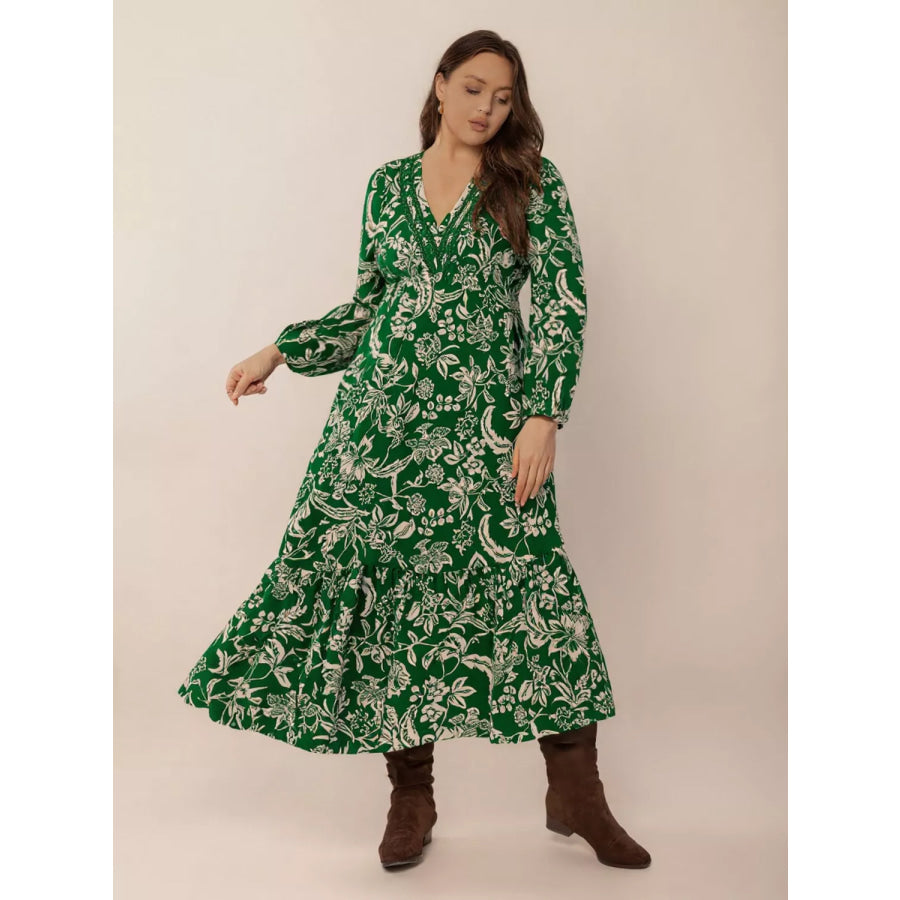Plus Size Botanical Print Long Sleeve Midi Dress