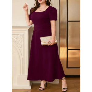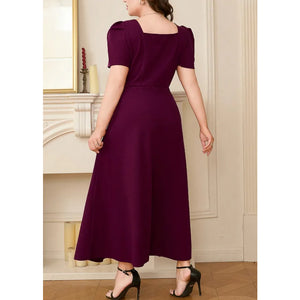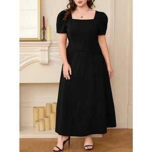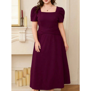 Plus Size Square Neck Puff Sleeve Midi Dress
