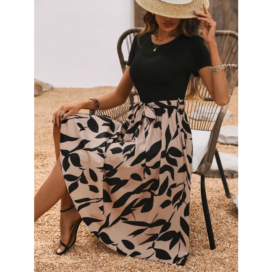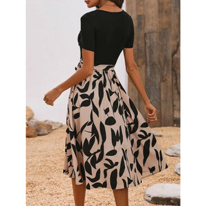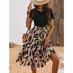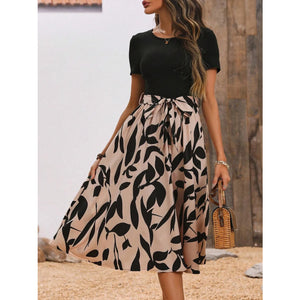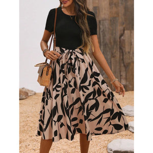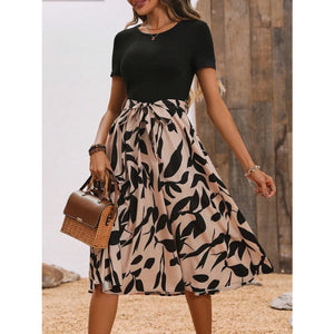 Printed Round Neck Short Sleeve Midi Dress